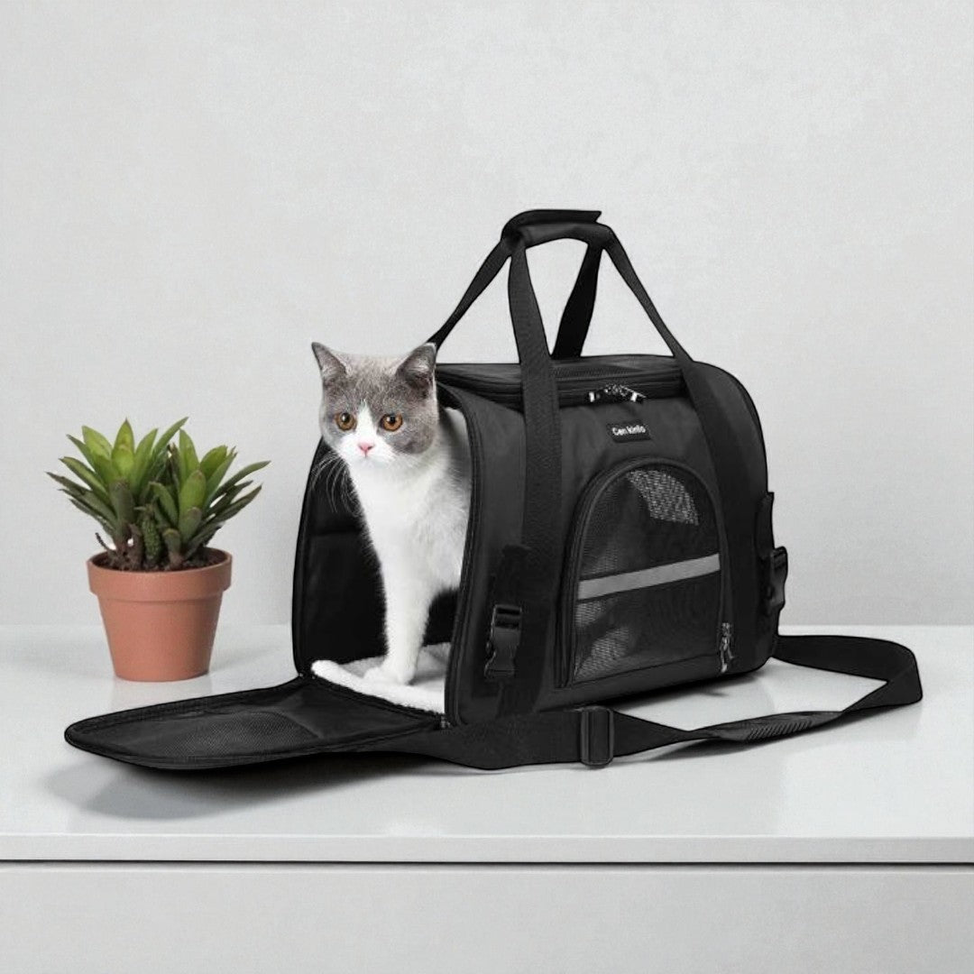 Die Transporttasche ist die ideale Lösung für sichere und bequeme Reisen mit deiner Katze oder deinem kleinen Hund.