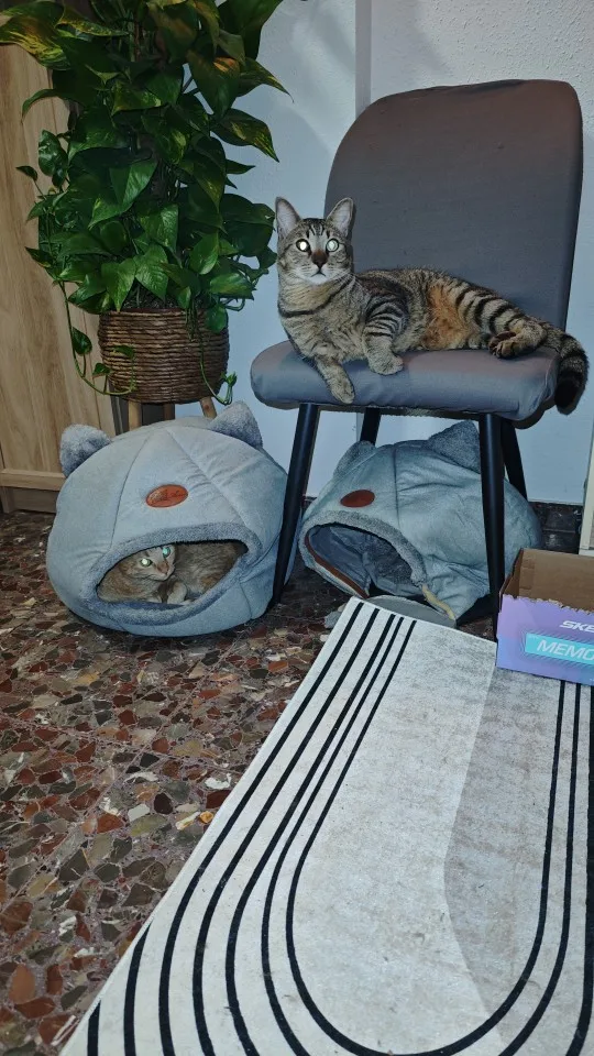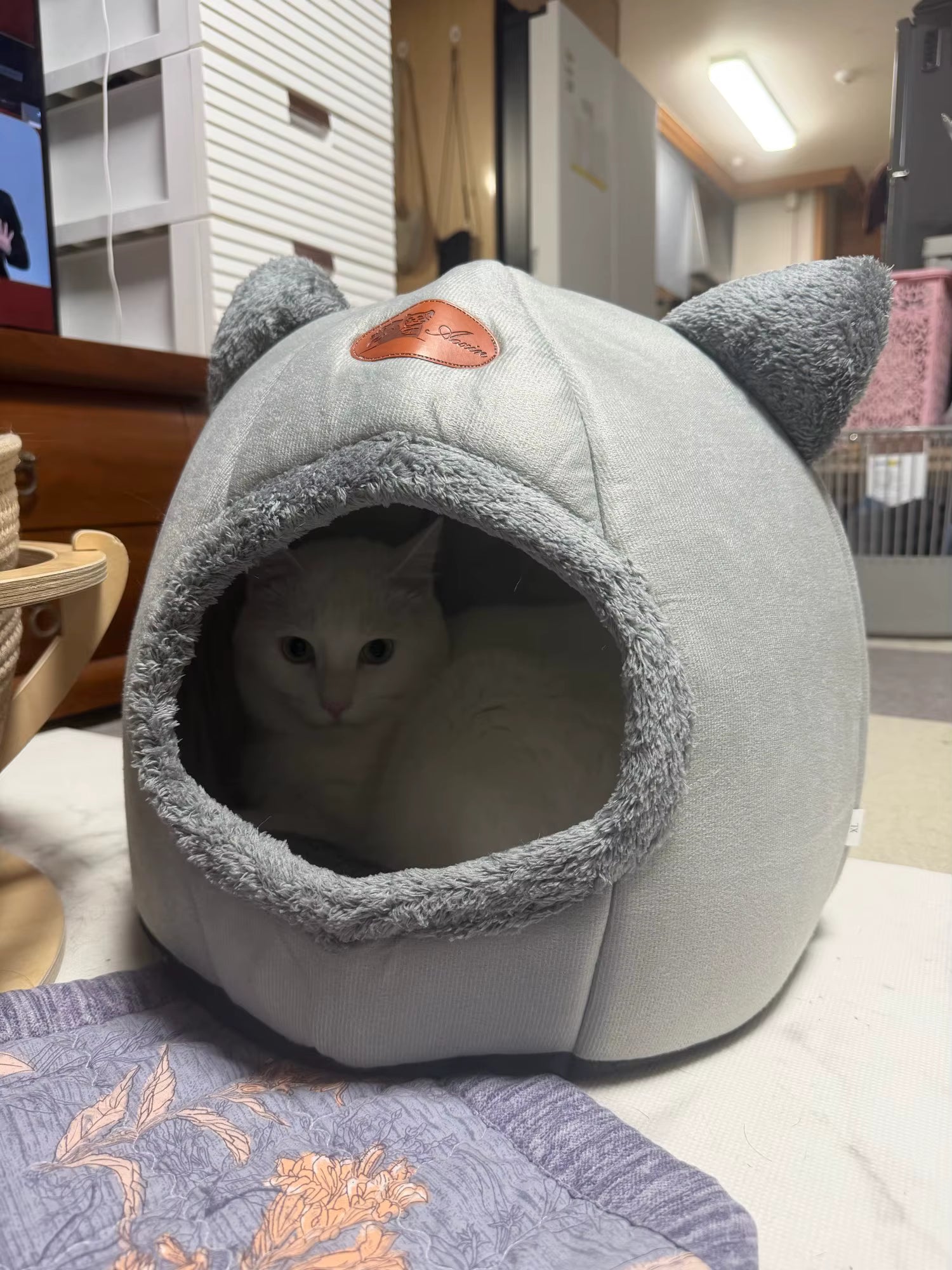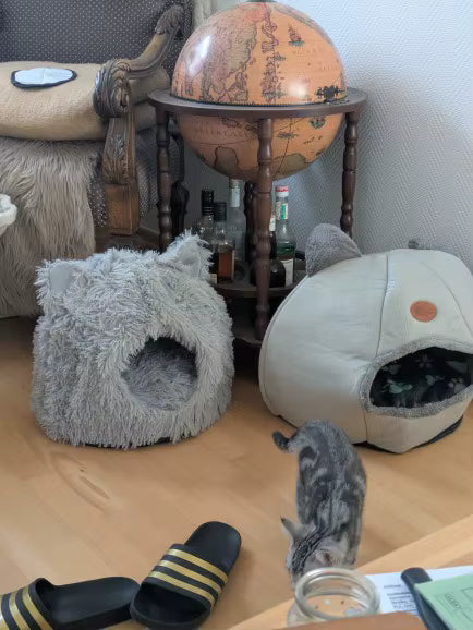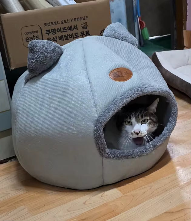 Das KuschelIglu ist der ideale Rückzugsort für Katzen, die Geborgenheit lieben. Das halbkugelförmige Design mit niedlichen Katzenohren sorgt für ein sicheres, warmes Gefühl – perfekt für tiefen, erholsamen Schlaf. Weich, gemütlich und einfach zum Wohlfühlen. 💤