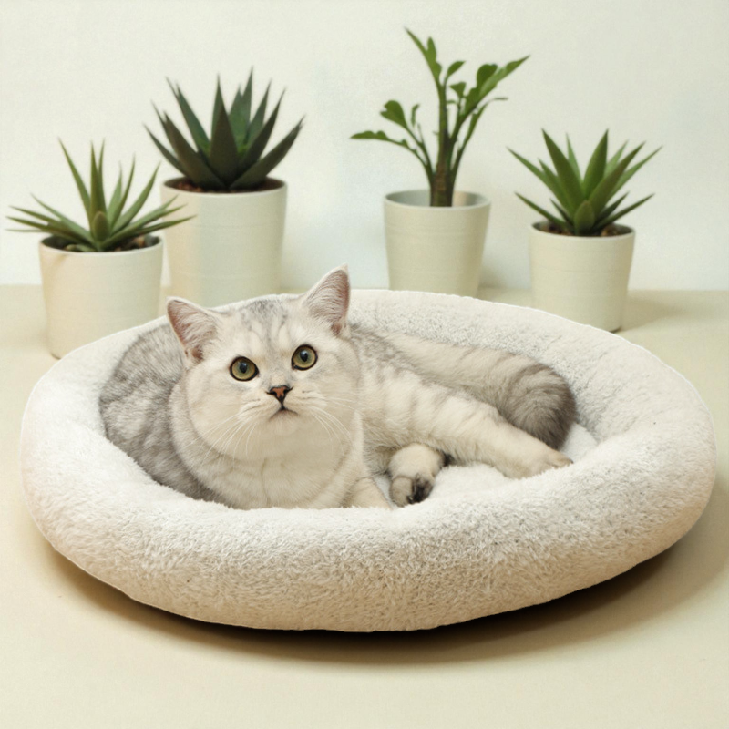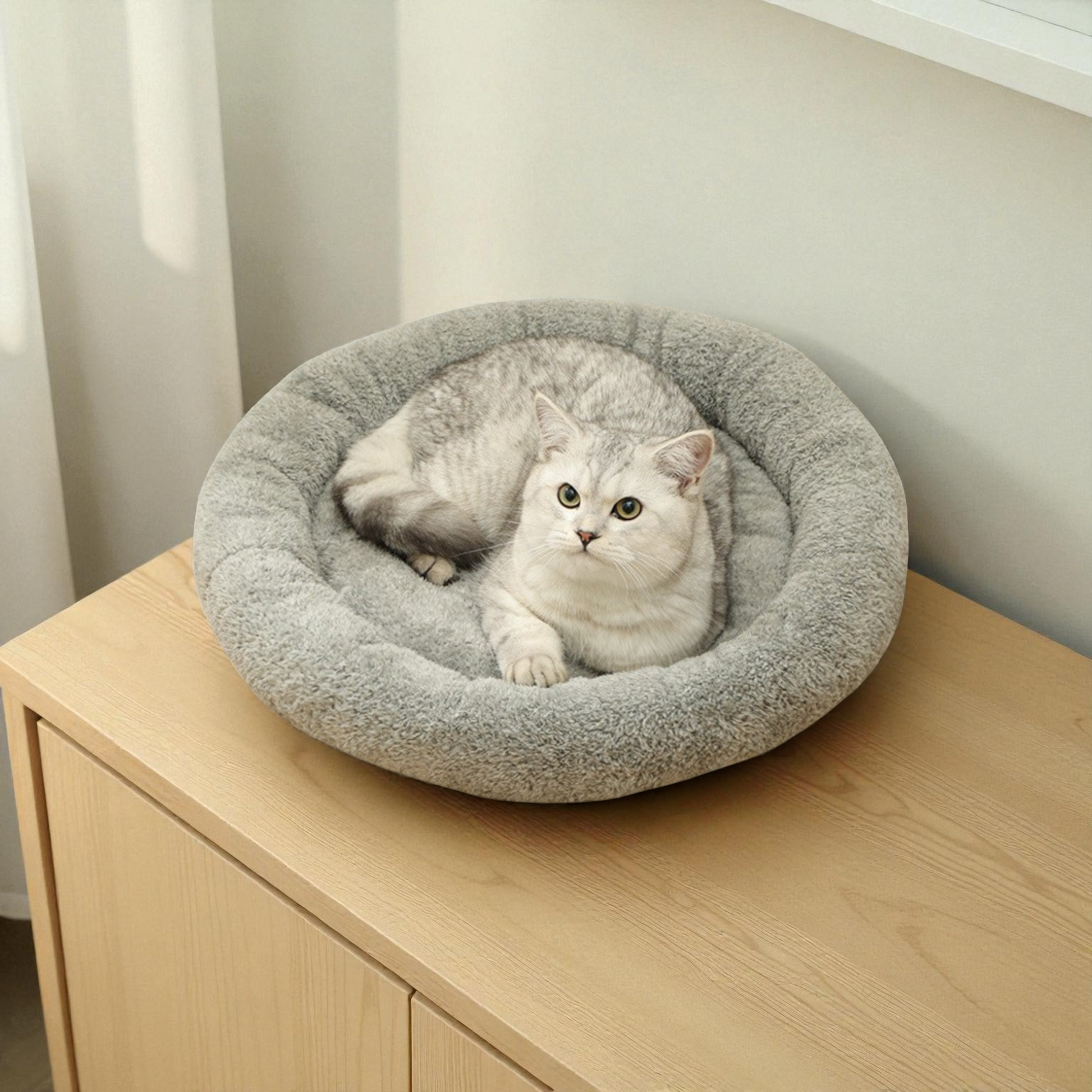 Weiches, rundes Haustierbett für Katzen und kleine Hunde 🐾 – bietet maximalen Komfort und Geborgenheit.