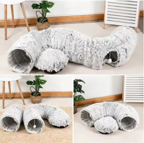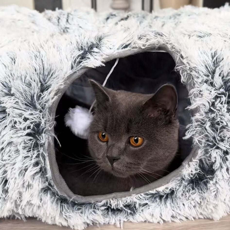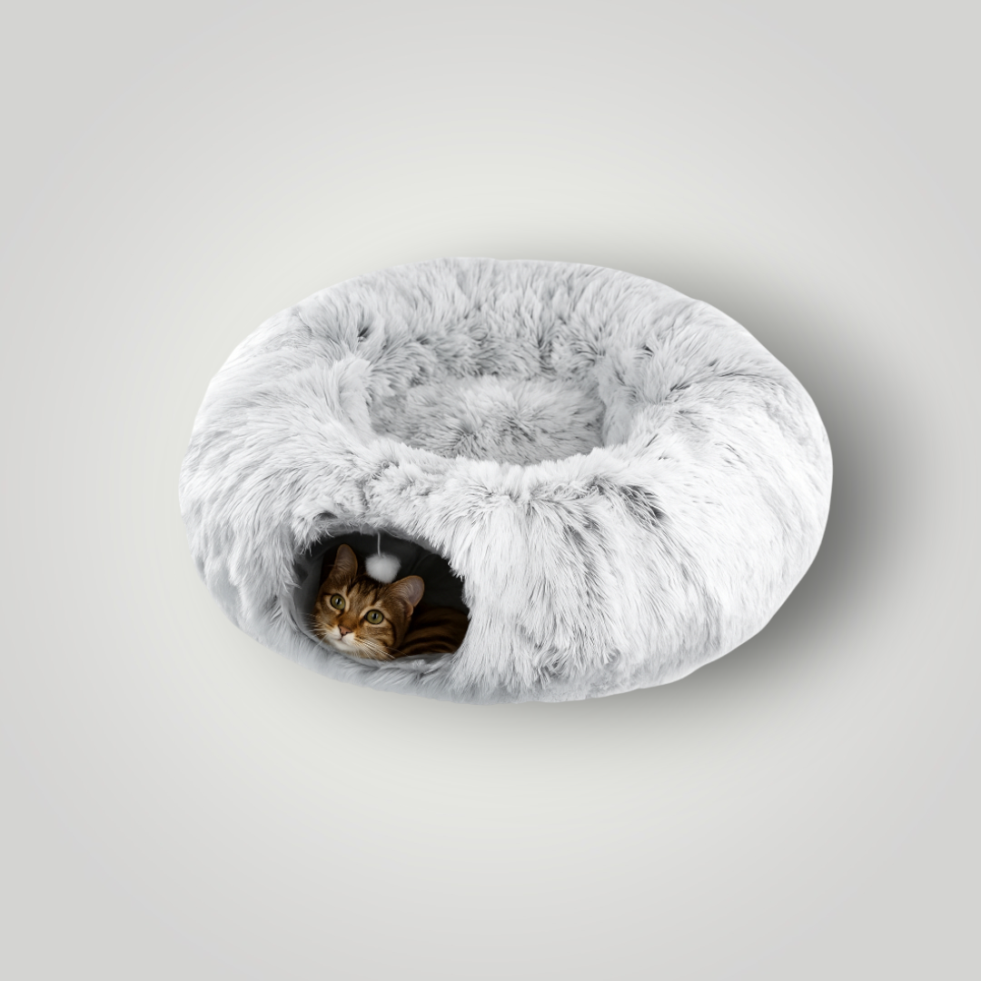 Die Flauschhöhle ist das perfekte 2-in-1 Katzenbett für Entspannung und Spielspaß. Ob zum Kuscheln, Schlafen oder Verstecken – der weiche Plüschstoff sorgt für Geborgenheit und Wärme, während der integrierte Tunnel zum Spielen und Erkunden einlädt. Ideal für Katzen, die Komfort und Abenteuer gleichermaßen lieben.
