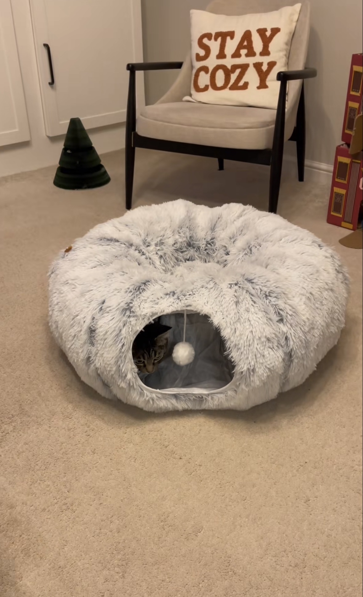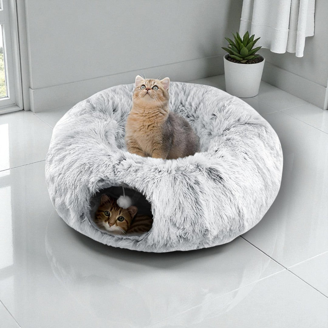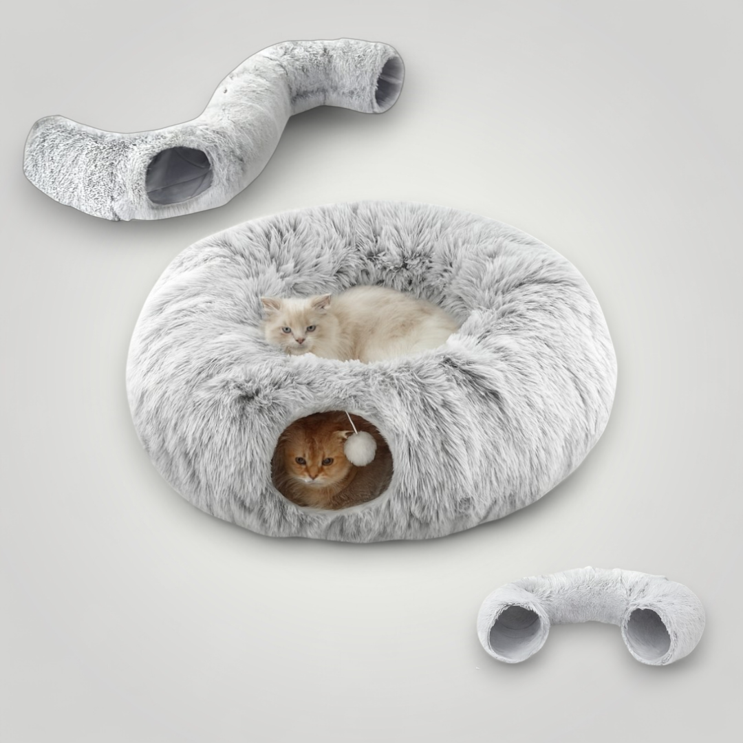 Die Flauschhöhle ist das perfekte 2-in-1 Katzenbett für Entspannung und Spielspaß.