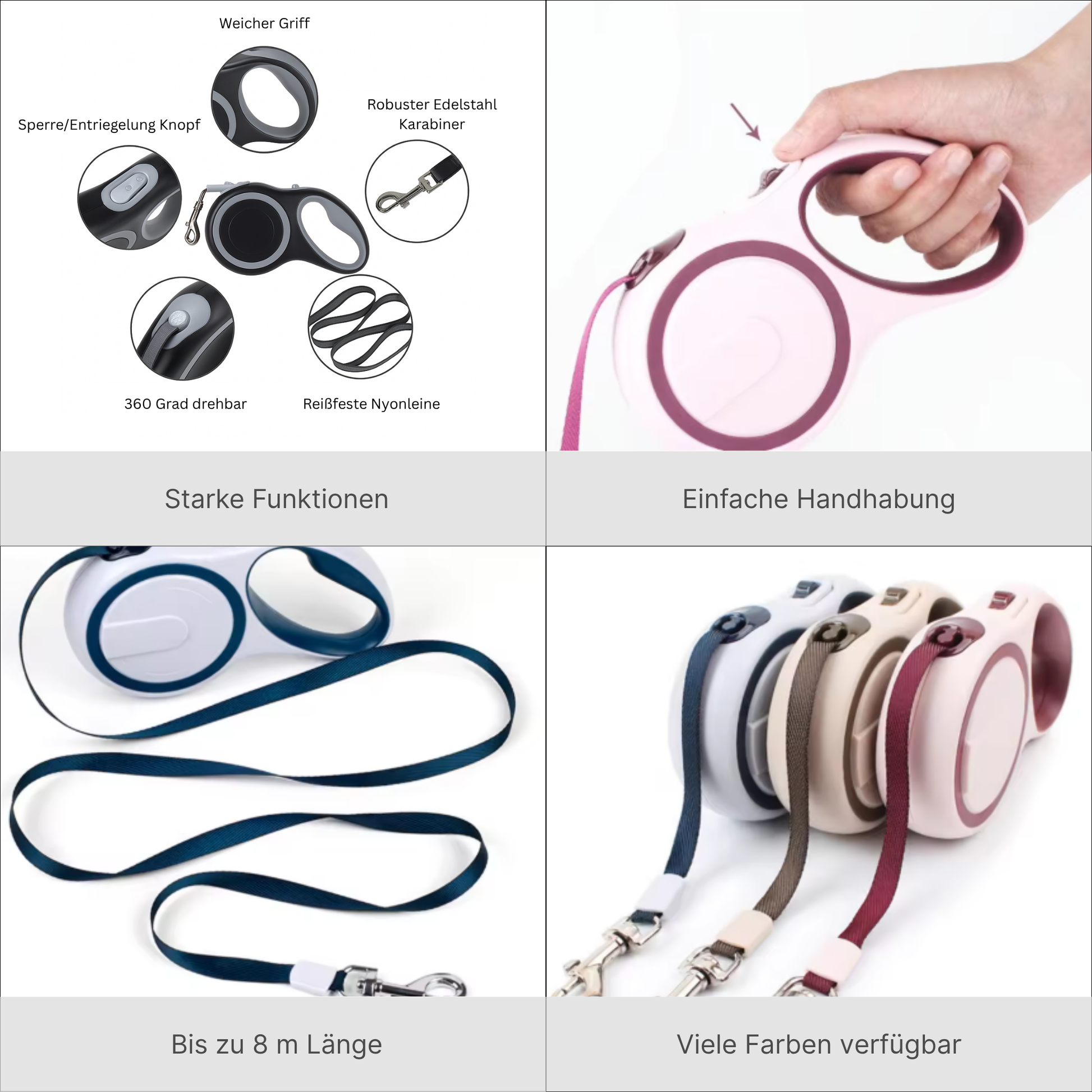 Unsere automatische Hundeleine kombiniert modernes Design mit maximaler Funktionalität – ideal für kleine, mittlere und große Hunde.