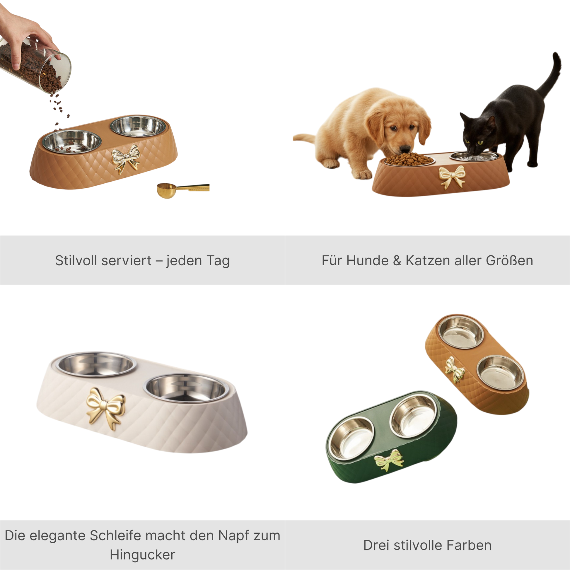 Der KuschelPfote™ Doppelnapf vereint Stil und Funktion in einem.