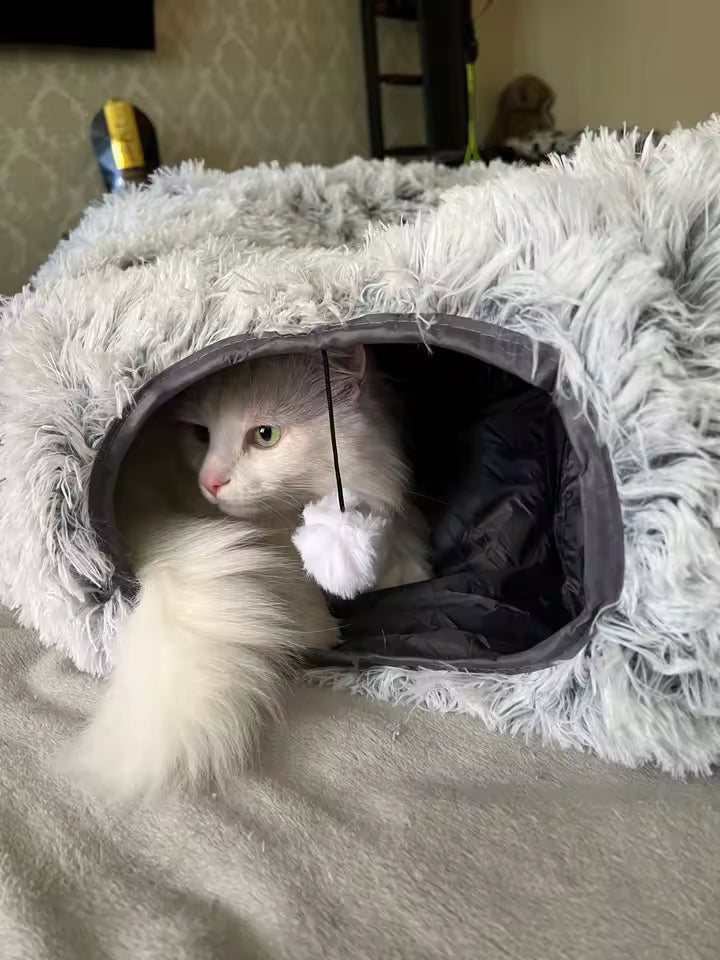 Das KuschelPfote Höhlenbett bietet deiner Katze oder deinem kleinen Hund ein unvergleichlich weiches und sicheres Schlafgefühl. Der flauschige Bezug mit integrierter Decke sorgt für Geborgenheit, während die rutschfeste Unterseite festen Halt gibt – ideal zum Einkuscheln, Verstecken und Träumen.